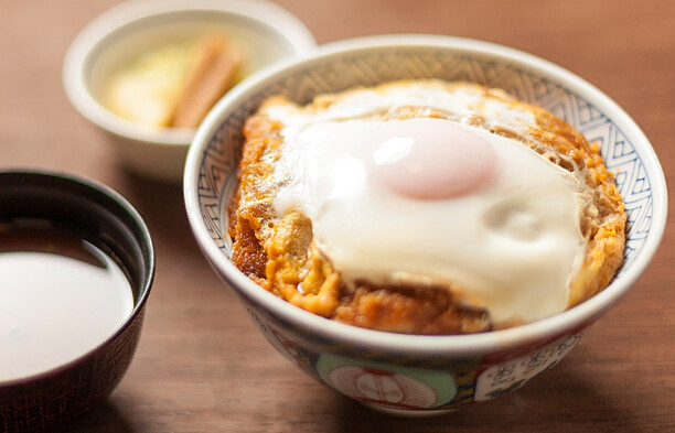 日本知名的料理鐵人.道場六三郎在品嘗過後讚不絕口,譽為「生涯第一的豬排丼」。炸腰內豬排淋上滑蛋後,再打上一顆半熟溫泉蛋,豬排醬汁以豬筋肉和洋蔥慢火熬製而成,滑潤鮮美的滋味佐以醬汁的甘甜在口中散發開來,令人回味無窮。
