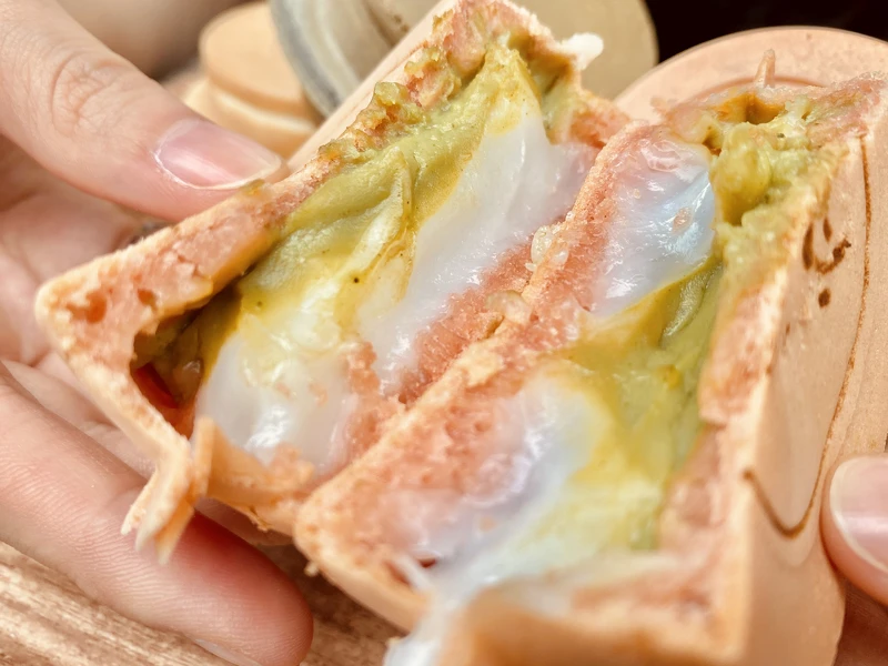 每日都會變換不同口味,讓前來品嚐的人都能享用到不同口味,這款抹茶麻糬帶有濃郁的抹茶香,在加入麻糬更增添口感,抹茶控們不能錯過~