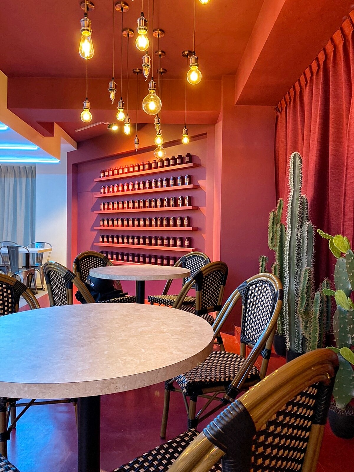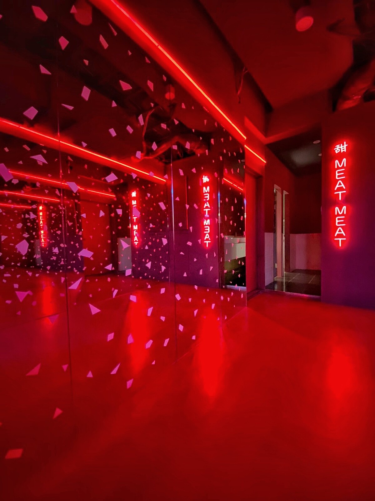 每個角落都擁有小巧思,連洗手間外的空間設有全身鏡,牆上釘有「甜MEAT MEAT」的LED光條,相信之後也會成為人氣打卡景點!