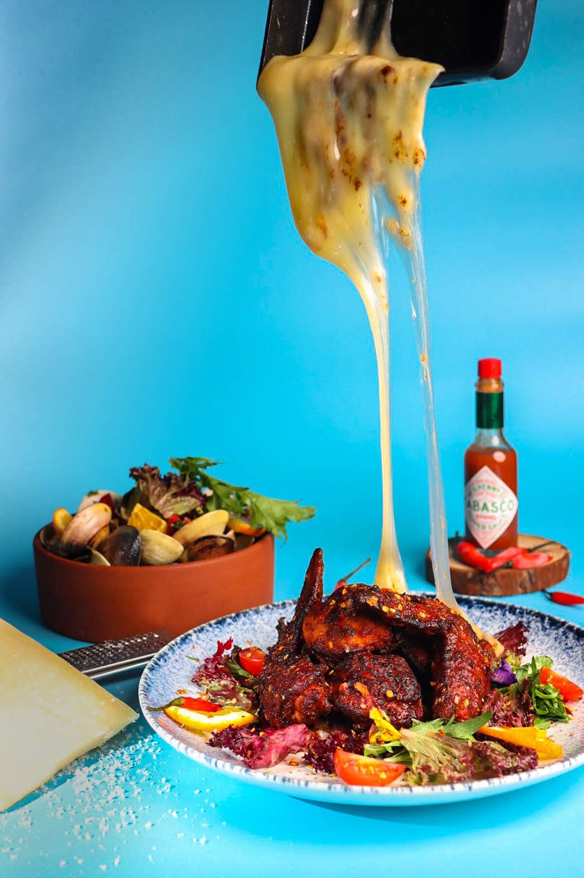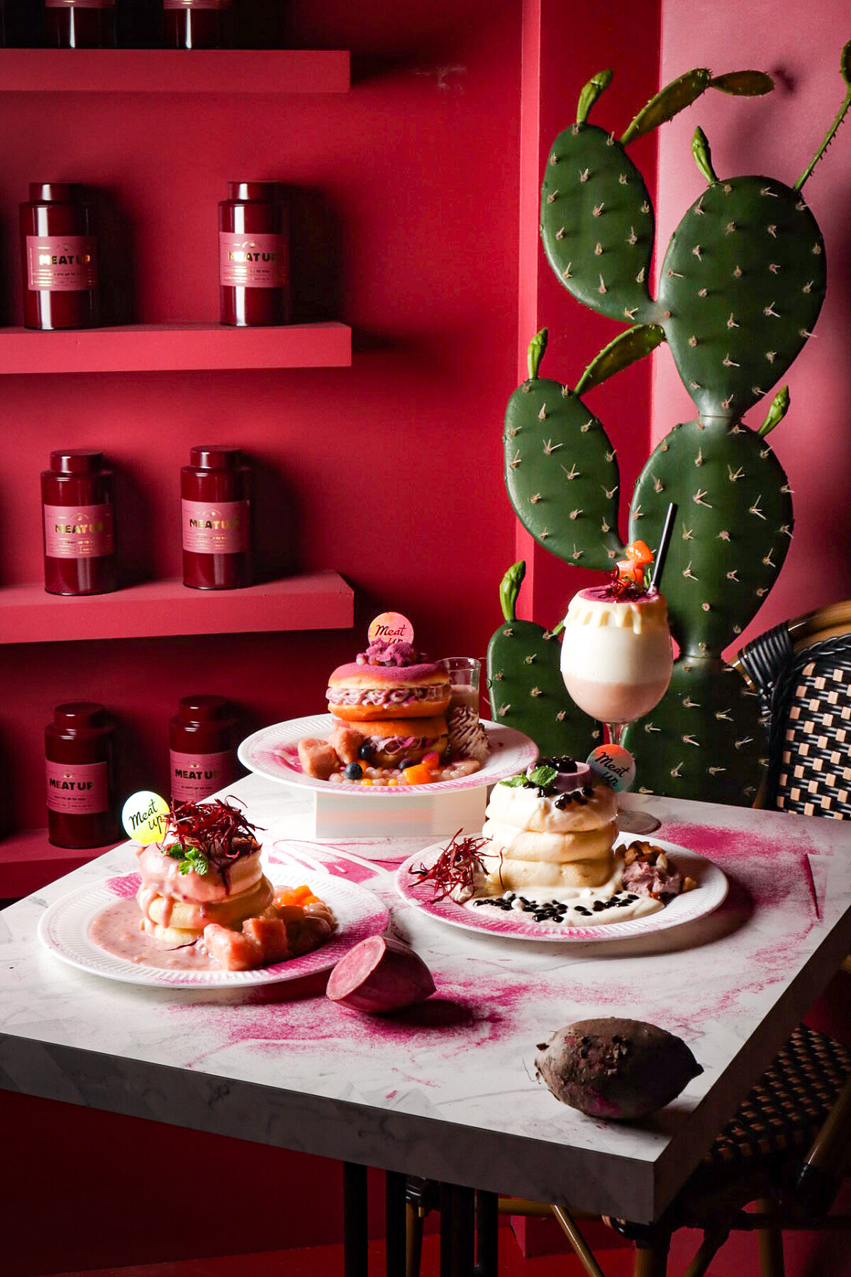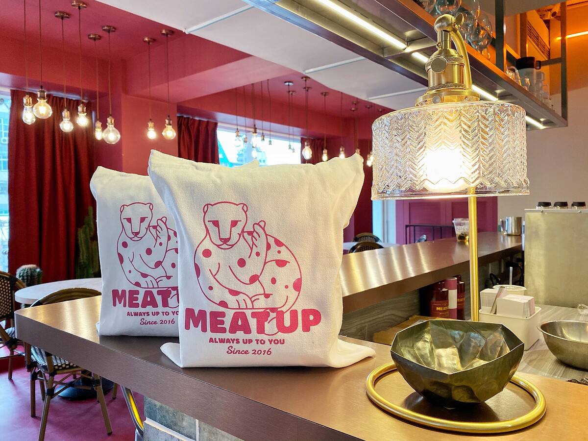 此外店內空間還有一個獨立包廂「MEAT室」,牆面以裝置藝術的形式,來呈現食物被一掃而空的有趣意象,原址的招牌紅鶴牆也完美複製到新店,象徵MEAT UP的浮誇精神一直都在。