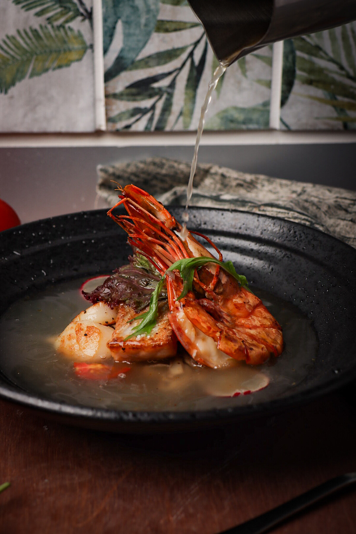 海鮮控也可以選擇鮮菇明蝦干貝,這道海鮮排餐有一個隱藏吃法,上桌後會桌邊服務淋上蛤蠣清湯,清湯高溫帶出食材鮮甜的精緻滋味,讓人意猶未盡。
