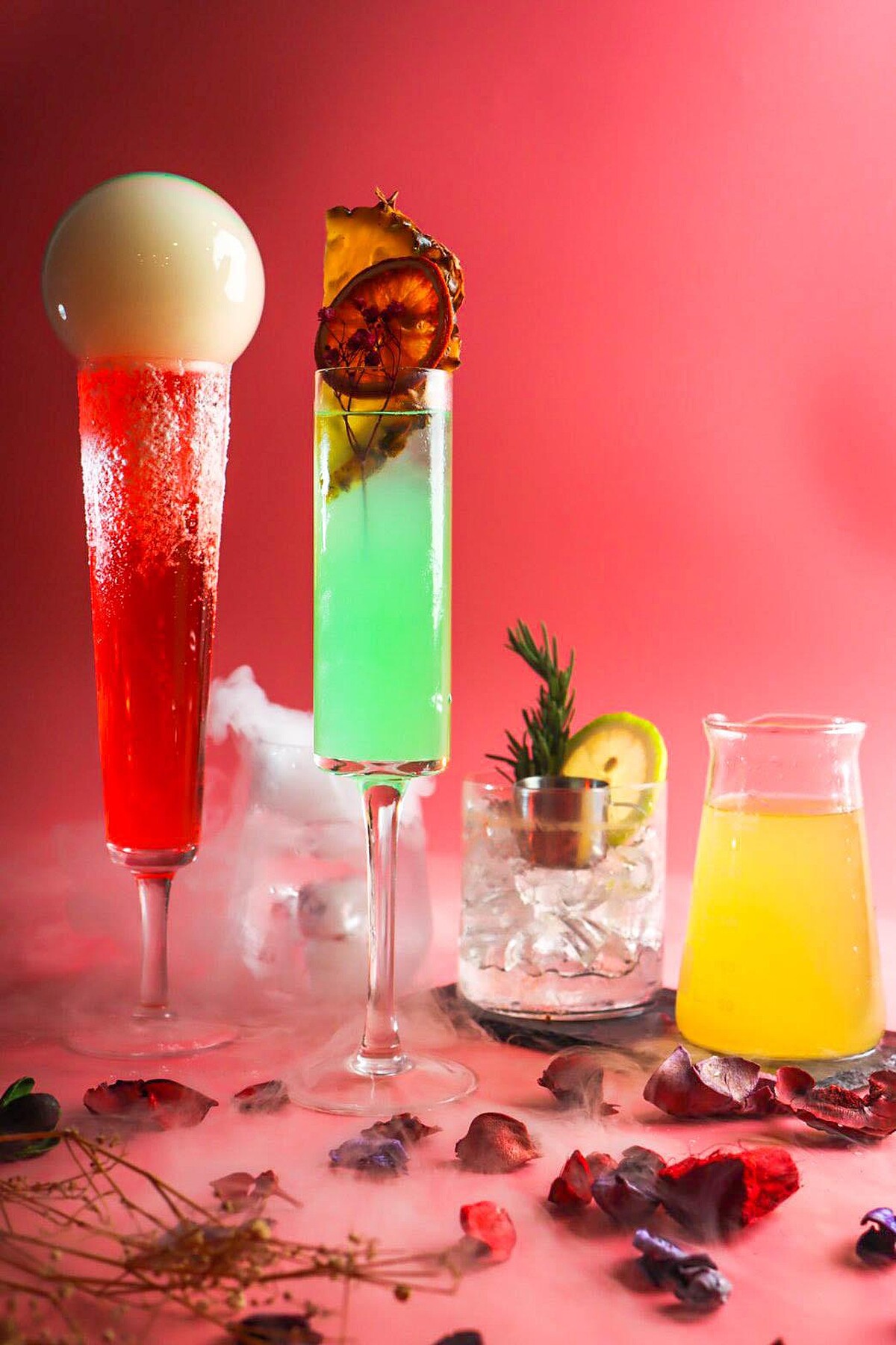 美味主餐怎麼能不搭配調酒,調酒師特別設計8款戀愛進行式中的情境,「曖昧」、「情慾」、「分手」等,其中最為吸睛的酒款–「愛你、想你,是我每一天最重要的事」,調酒師會在杯口以蘋果木煙燻製作出一顆大泡泡,泡泡搖晃的模樣相當療癒,讓大家啜飲的同時感同身受談戀愛時的酸甜苦澀。