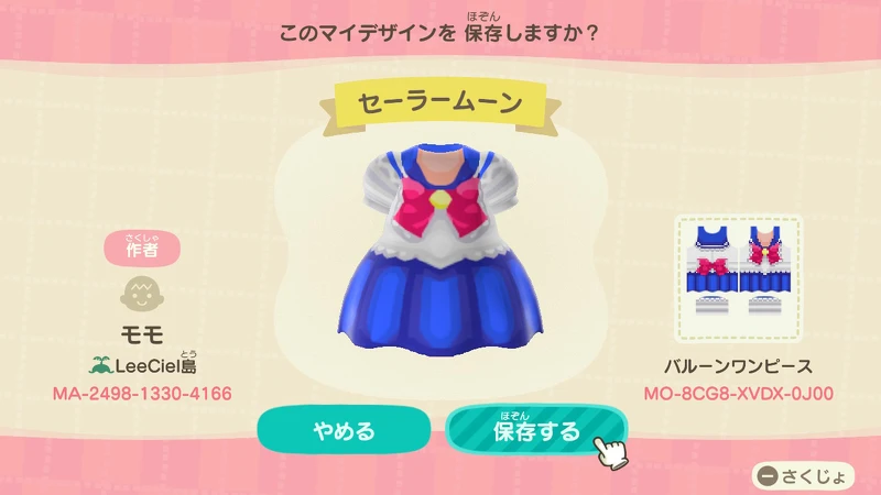 除了作家親手設計外,俗話說高手在民間,有許多神手島民將人氣動畫角色代表服裝繪製出來,而網友將美少女戰士水手服繪製出來。