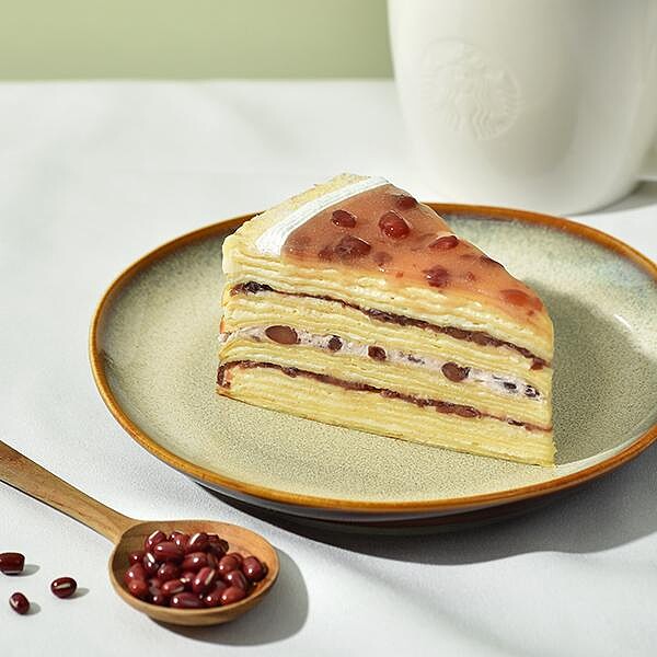 褚紅色的紅豆與潔白鮮奶油交錯在薄透的蛋皮間,交織出鬆軟甜香、溫潤愜意的氛圍,綿密的紅豆餡香氣在口中散開的滋味,細細品嚐還會發現有完整紅豆顆粒增加口感。