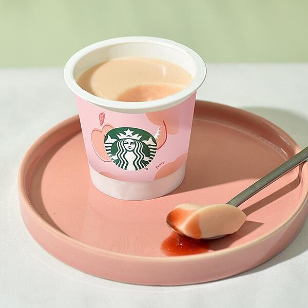 夾藏著微甜微酸的覆盆莓果漿,與咬得到顆粒的蜜桃丁,粉嫩外盒與布丁體都令人食指大動!