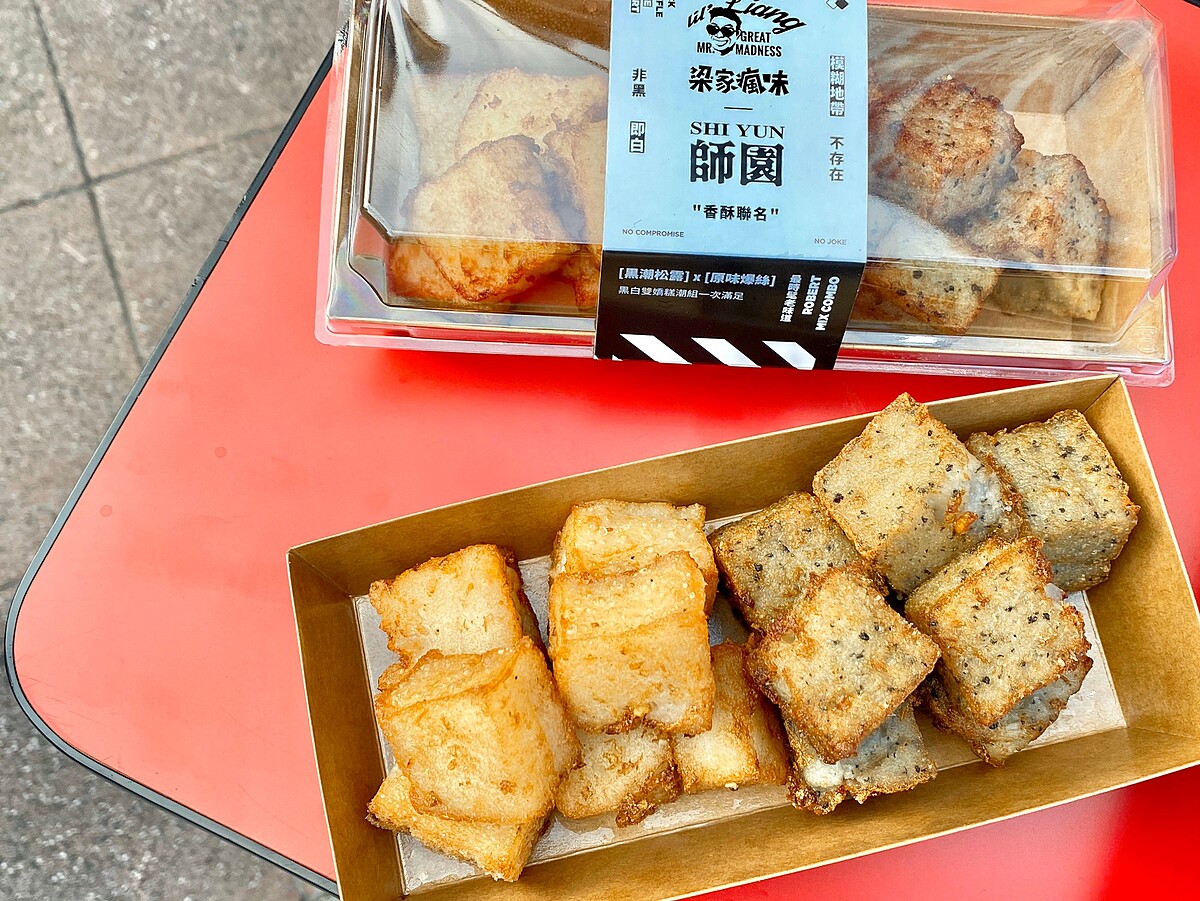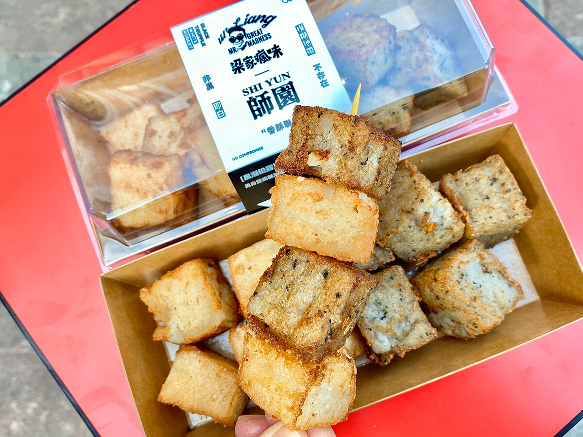 師園鹹酥雞與梁家瘋味攜手推出「黑白雙嬌糕潮組」!梁家瘋味在台南起家,以網路宅配販售港式蘿蔔糕擄獲不少饕客的心,累計銷售多達40萬條的蘿蔔糕,相當於126座台北101的高度,更有台灣第一蘿蔔糕的美名!