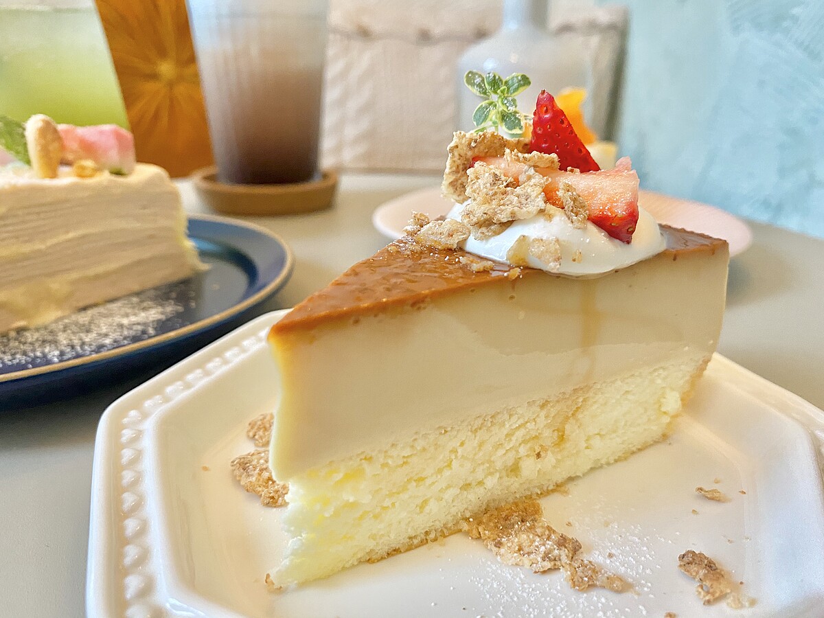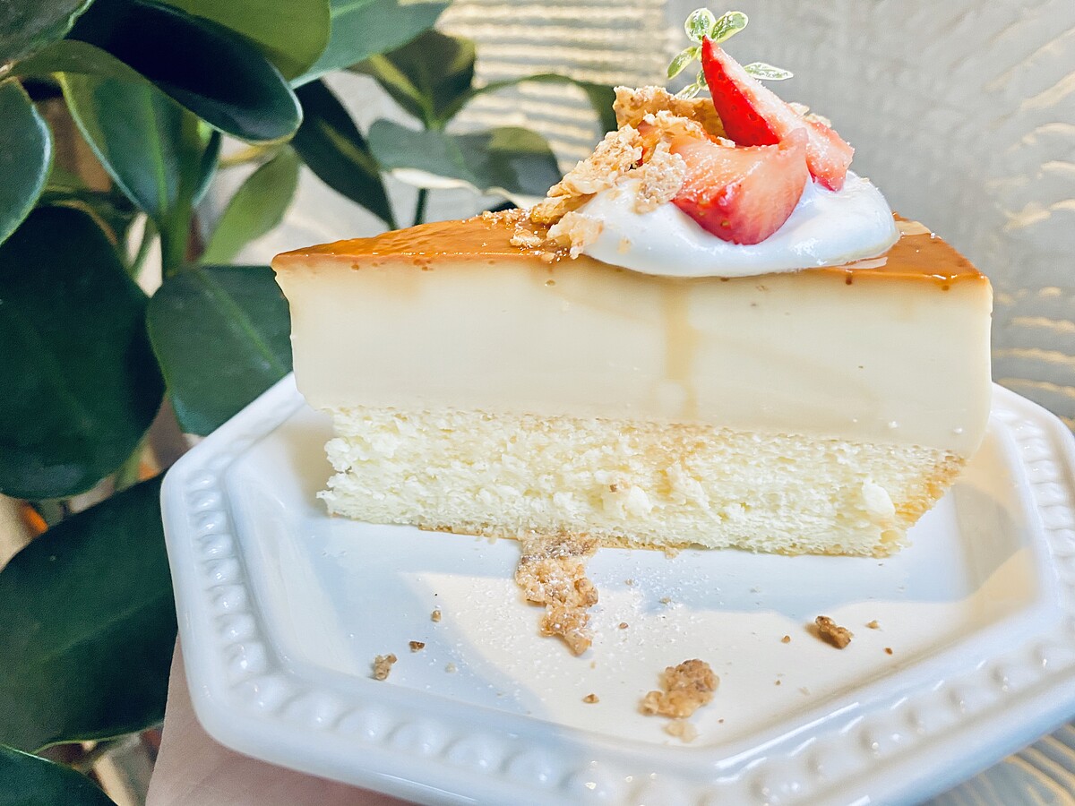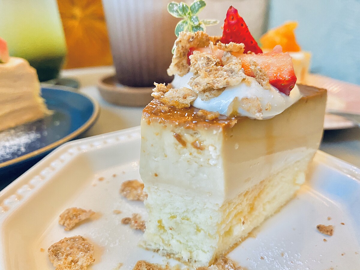 以手工的雞蛋布丁搭配香濃的焦糖醬,屬於Q彈口感布丁,下方則是輕乳酪蛋糕。