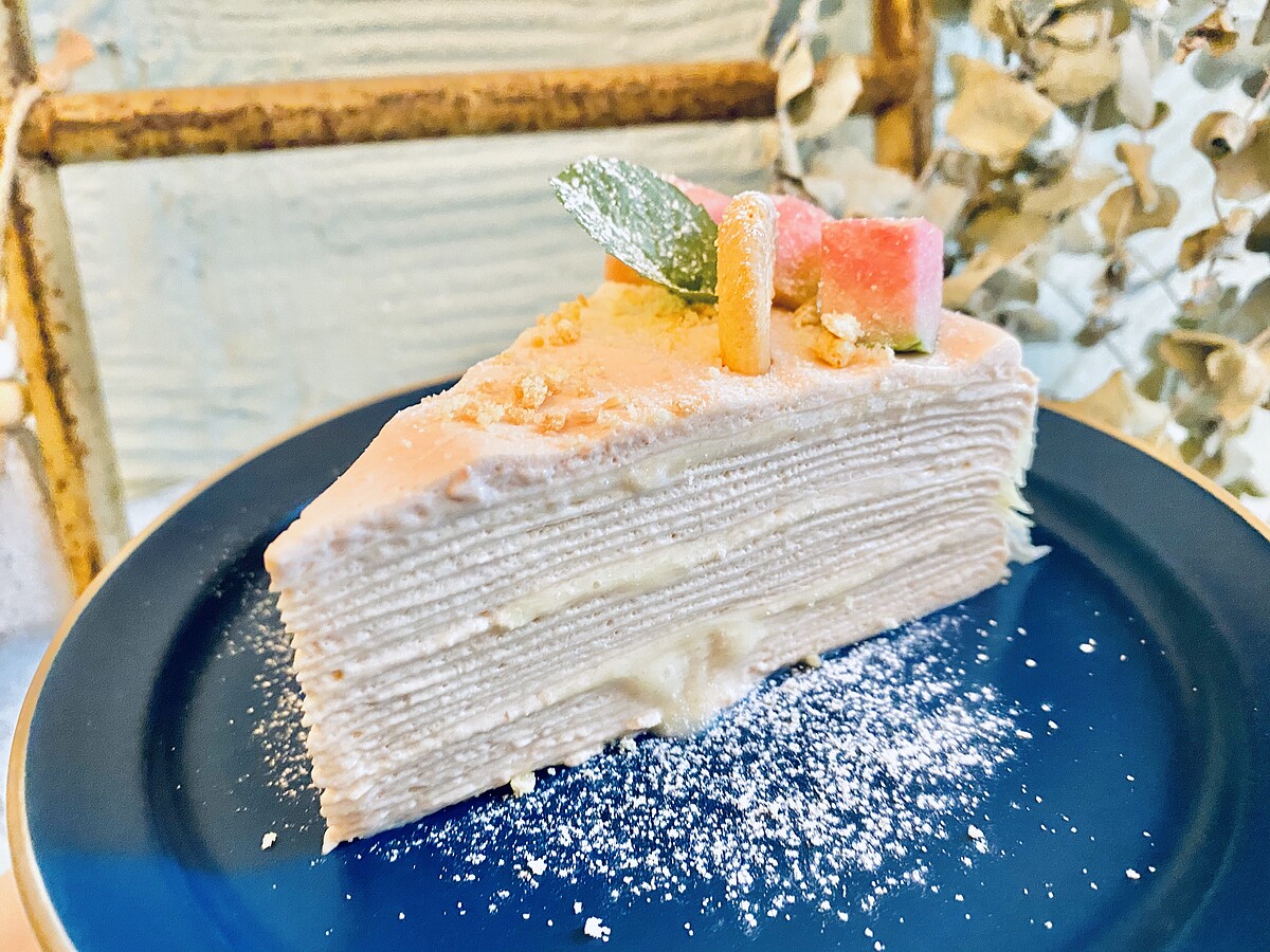 與以往市售的千層蛋糕最不同的是加入了乳酪讓風味更加香濃滑順,入口感受紅心芭樂草本香氣,與檸檬風味非常清爽,不嗜甜的人也可以點來嚐鮮!