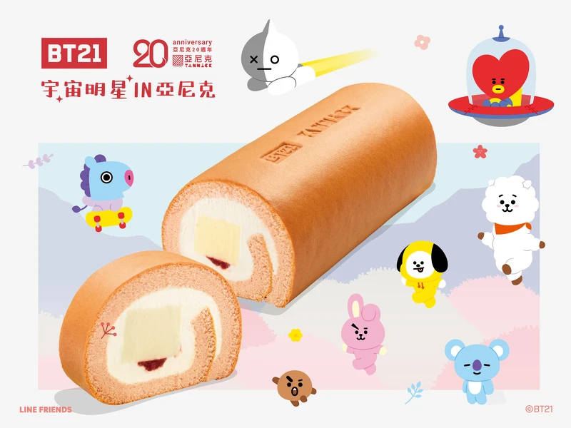 繼之前推出的「焦糖布丁生乳捲」、動物點心杯,香濃布丁甜點一次滿足,這次亞尼克又出新招啦~與「宇宙明星BT21」共同打造「草莓多多生乳捲」!