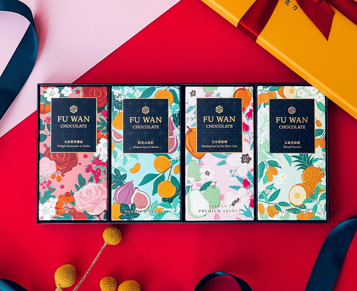全新的「島嶼時光」巧克力禮盒共有4款,分別以台灣美景命名,包括「九份黃昏邂逅」、「阿里山雲彩」、「日月潭斜暉」以及「太麻里晨曦」,將巧克力、茶、水果、花卉完美結合,外觀上更充滿繽紛色彩,肯定是最美巧克力無誤。