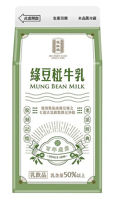 7-ELEVEN獨家販售,杜老爺與台南百年餅店舊振南聯名款,濃郁綠豆香氣與牛乳融合,添加黑高寒天,口感多層次