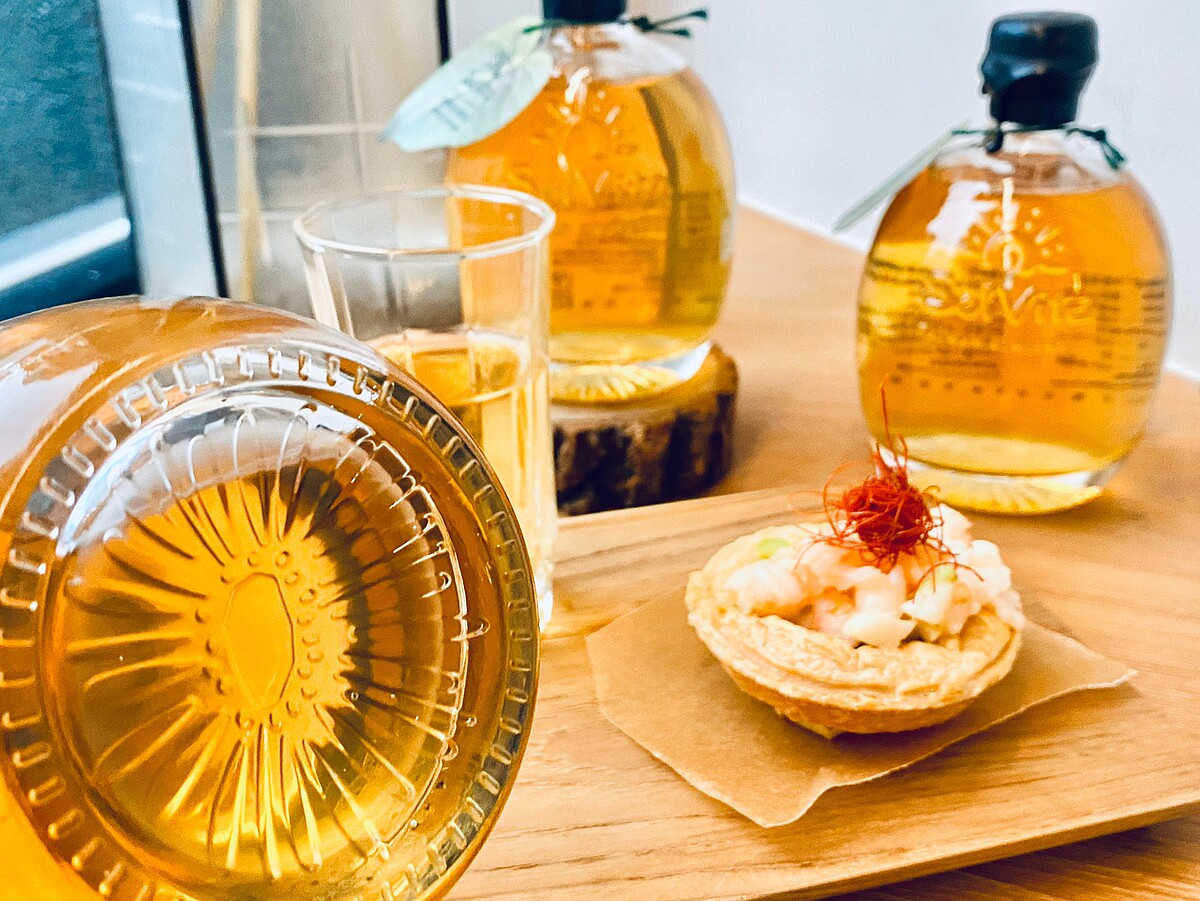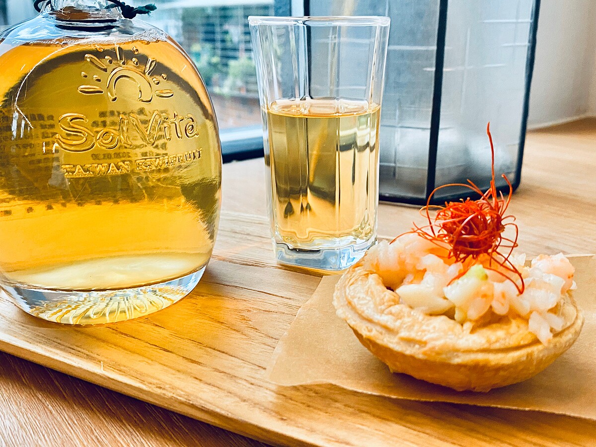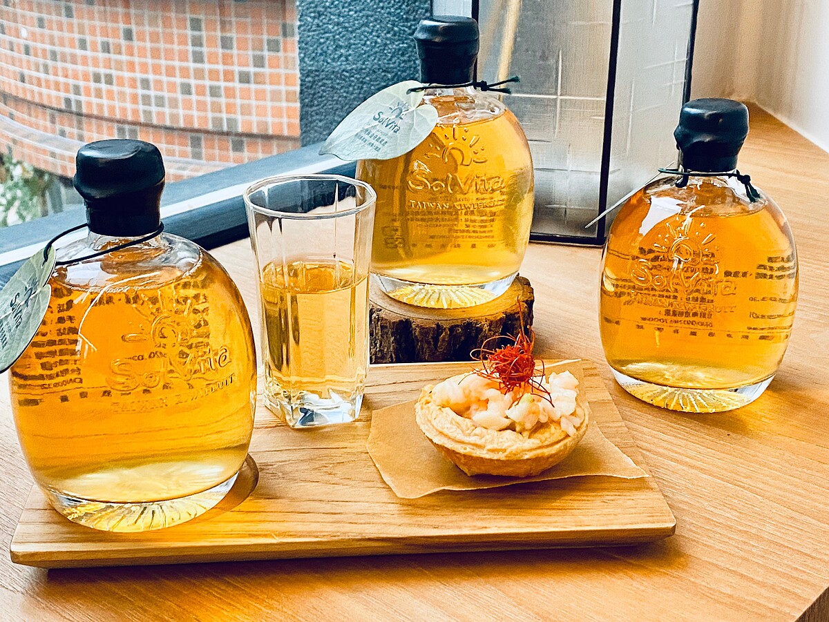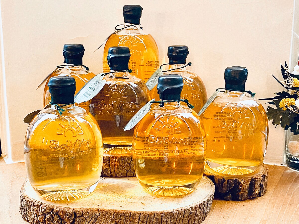 在地種植改良的黃金奇異果,歷經多次嘗試奇異果副產品研發,終於在歷時陳釀後,成為透亮金黃的首支臺灣奇異果酒!