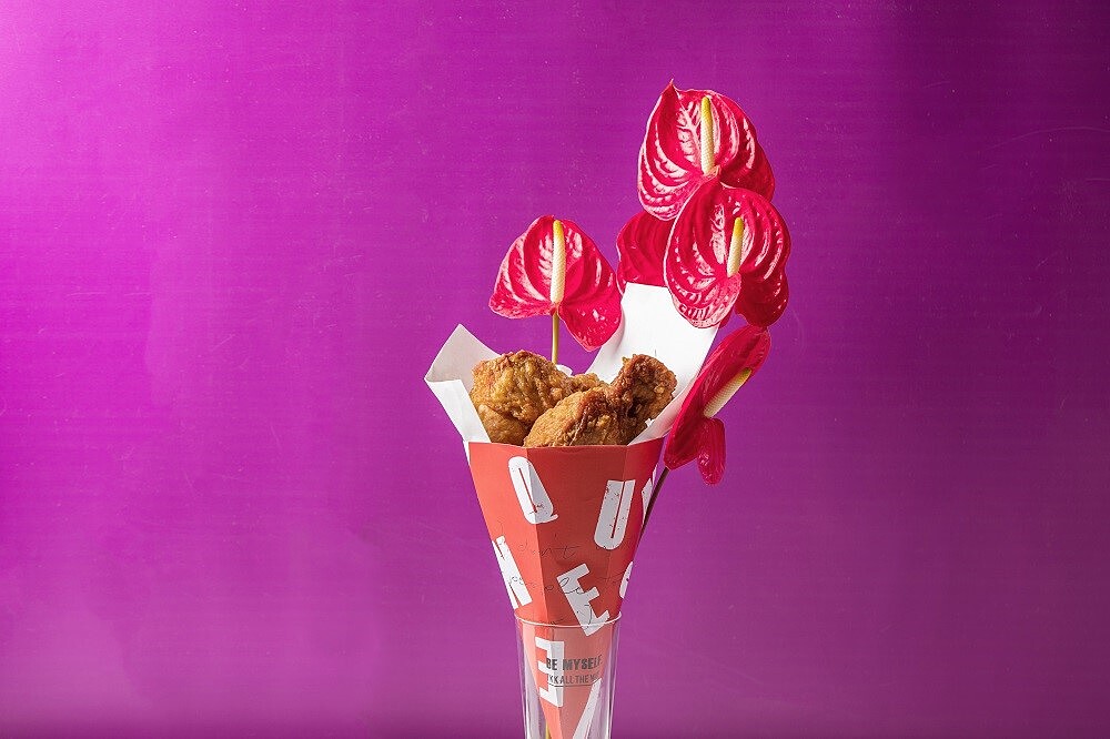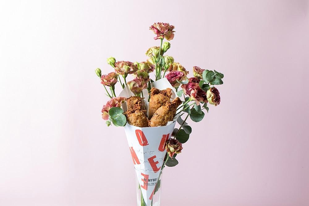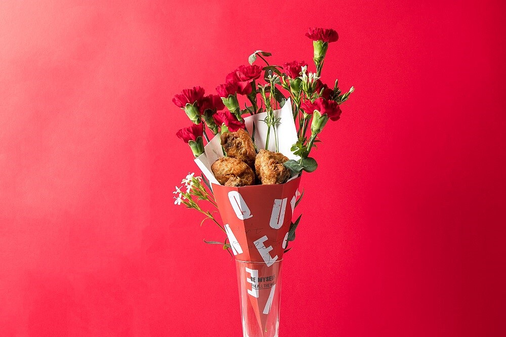 「頂呱呱」炸雞花活動主要是針對一年一度的母親節推出,雞腿、炸雞等裝飾成花,一整束香噴噴的送到媽媽手裡,想必任誰都難以抗拒吧!