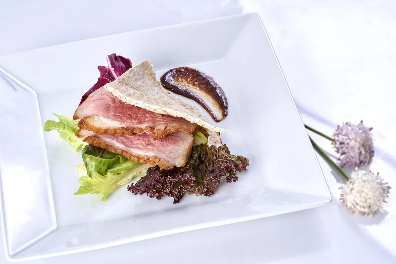 創意來自北京醬鴨與中東口袋燒餅,夾入鮮綠時蔬,味蕾感受增添異國風情卻仍保留熟悉的中式風味。