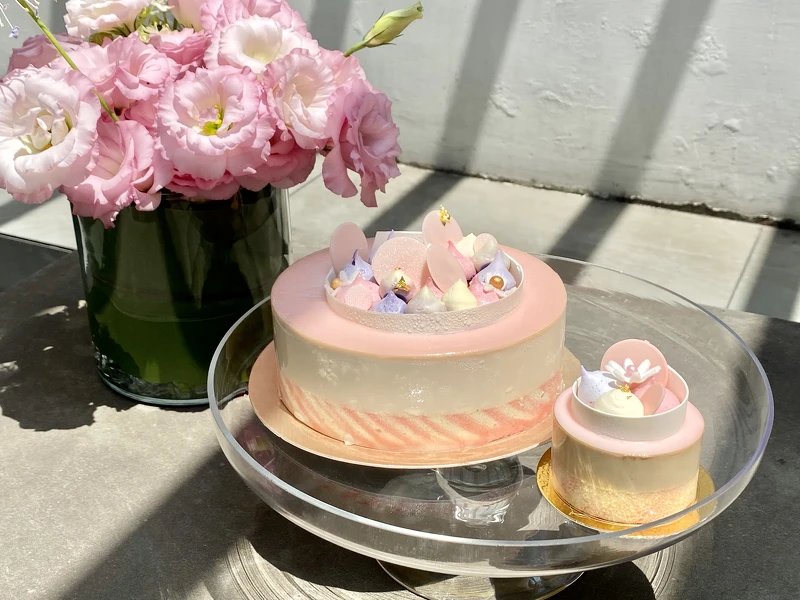 最後點綴覆盆莓棉花糖、鮮奶油香緹、瑪琳糖…,10多道繁複的工序細膩地為母親節蛋糕呈現溫柔高貴的法式風情!