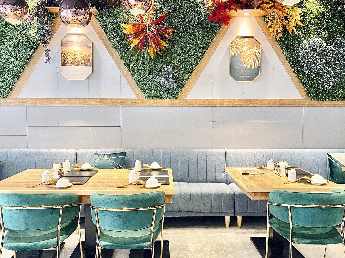 御鼎湯原本鍋物林口店延續了新莊店的綠意花牆,但整體設計更佳細緻,每個座位都具有不同小巧思,非常大家大拍特拍網美照!
