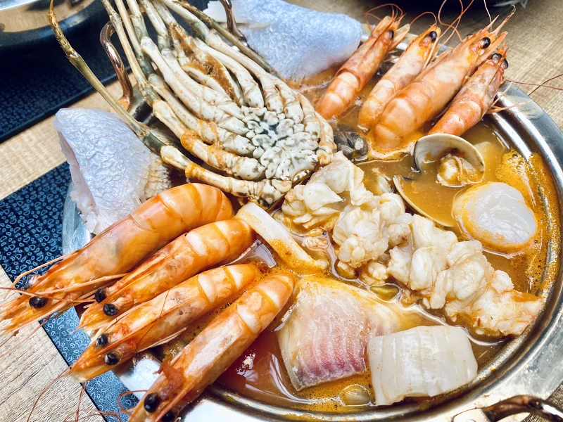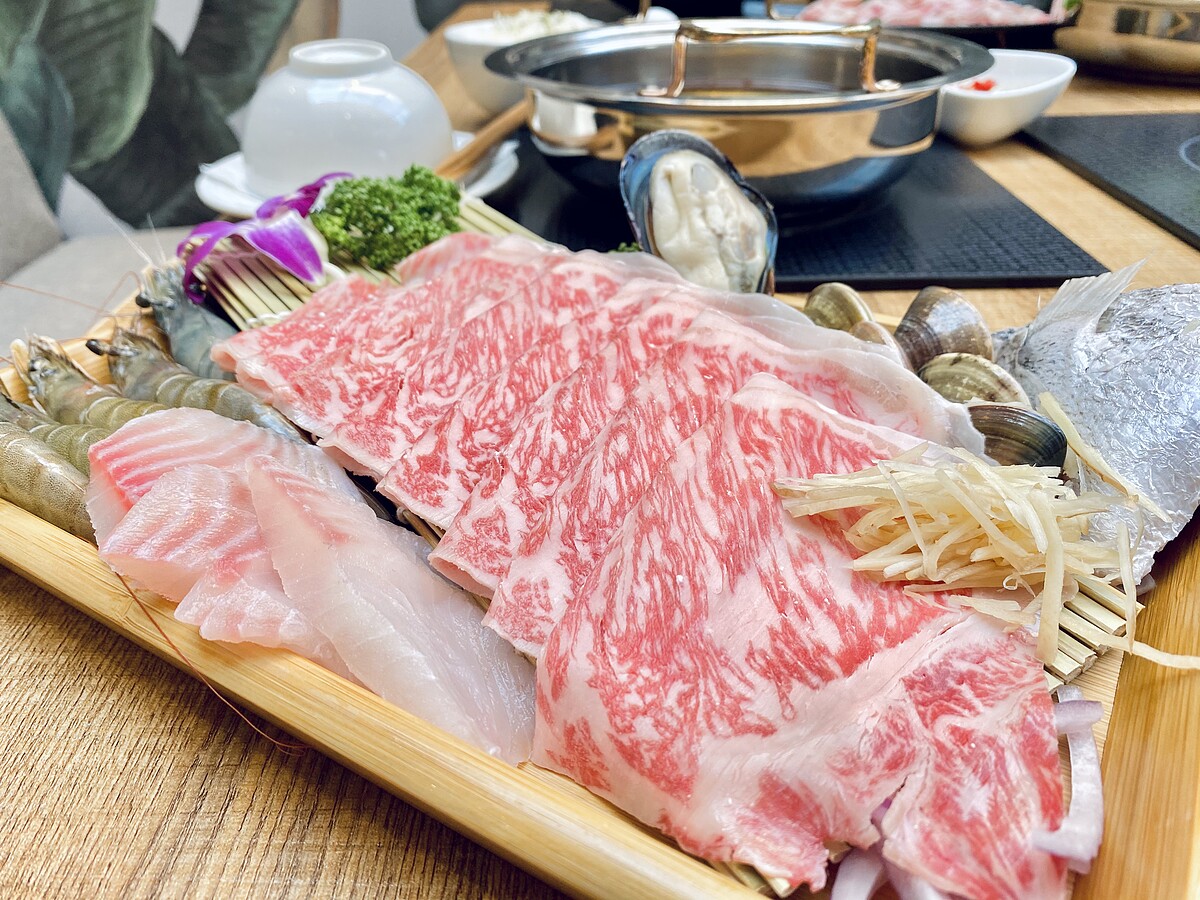 涮下鮮甜的日本A5和牛,搭配海鮮一同享用~讓人每一口都超滿足!