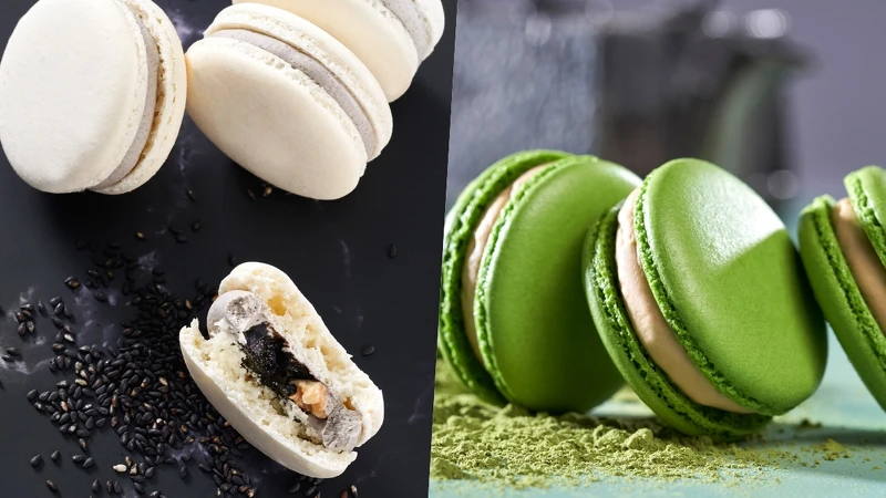 采采食茶除了擁有精緻典雅的餐點外,在馬卡龍的口味上也時常推曾出新,繼之前推出春季限定!采采食茶推限量櫻花梅子馬卡龍,玫瑰荔枝粉嫩後,這次將古早味融入款馬卡龍當中,分別是抹茶黑糖馬卡龍、芝麻核桃馬卡龍等。下午茶想要品嚐點甜食解饞,不妨嘗試這2款令人眼睛為之一亮的馬卡龍吧!