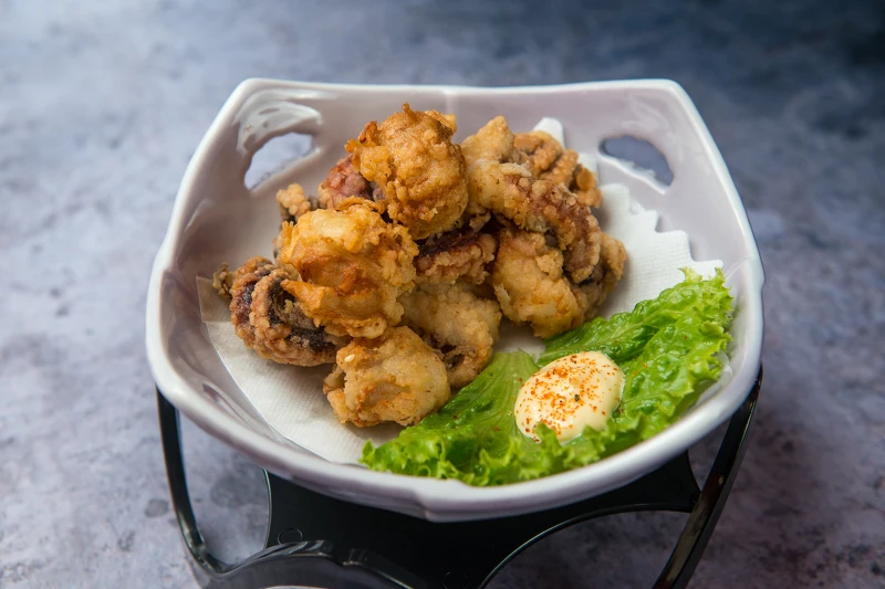 石居是澎湖特產的小章魚,肉質厚實彈牙、海味鮮濃。輕裹酥炸粉炸熟上桌,佐微酸的日式美乃滋品嚐,愈嚼愈香。