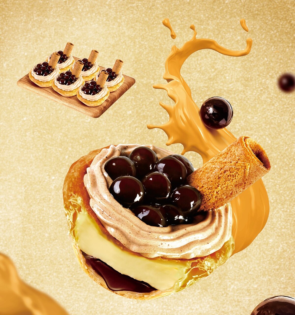 肯德基全新「黑糖珍奶蛋撻」將經典手作163層酥脆撻皮及葡式奶蛋餡,完美融和濃醇黑糖漿,接著上層點綴一圈斯里蘭卡錫蘭紅茶調製的奶茶卡士達,並放上晶瑩剔透的波霸珍珠,最後插上脆餅吸管,滿滿餡料光看就超想塞入口中。