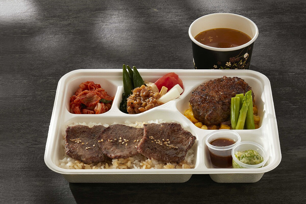 《老乾杯》共有10款口味可選,包括日本A5和牛、MB7+澳洲和牛、西班牙Bellota伊比利豬為主食,像是「日本A5和牛上等牛排」「日本A5和牛漢堡排」、「限定熟成冷藏牛舌」以及「西班牙Bellota伊比利豬雙拼」都躍上餐盒,絕對是最奢華的夢幻肉品便當。