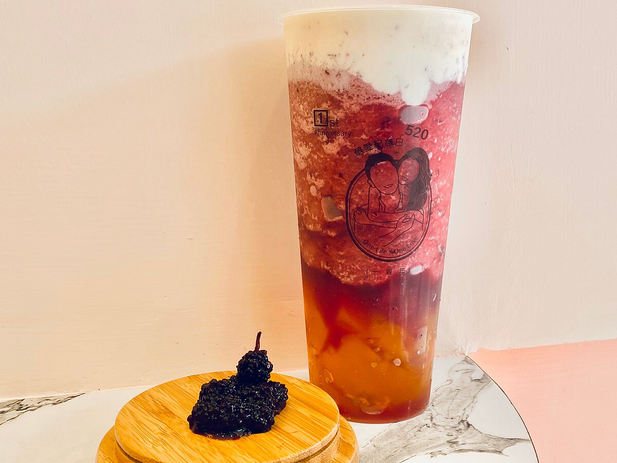 最底下加入茶凍,接著再裝入桑椹冰沙,讓口感更加豐富多層次,入口感受桑椹酸甜滋味與芝室香味融合得恰到好處,喜愛清爽風味的也可以點選這款!
