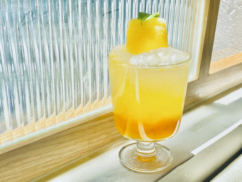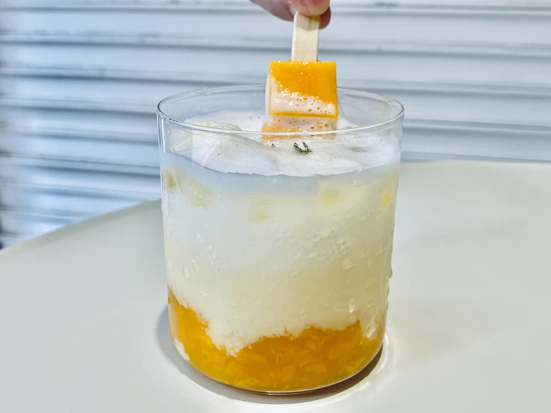 以往芒果冰沙都是將芒果與冰塊共同打碎製成冰沙,Shun Coffee底部加入新鮮芒果果肉,接著放入新鮮芒果製成的芒果汁製成的冰棒,最後再倒入氣泡水,這時候品嚐像芒果氣泡飲!