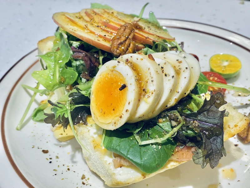 一口咬下鹹甜滋味讓人回味無窮,佐以蔬菜還有起司、太陽蛋,想品嚐鹹食又不想吃太多的新選擇!