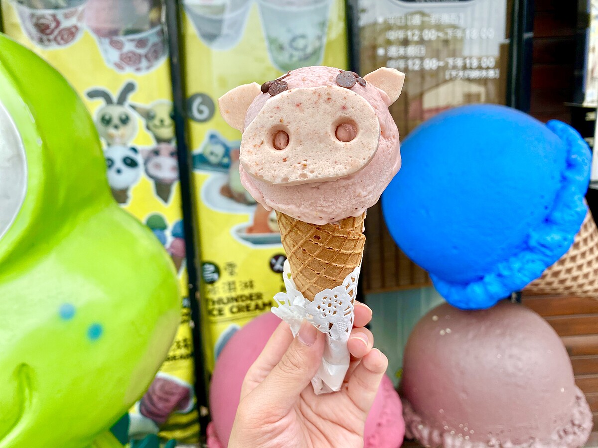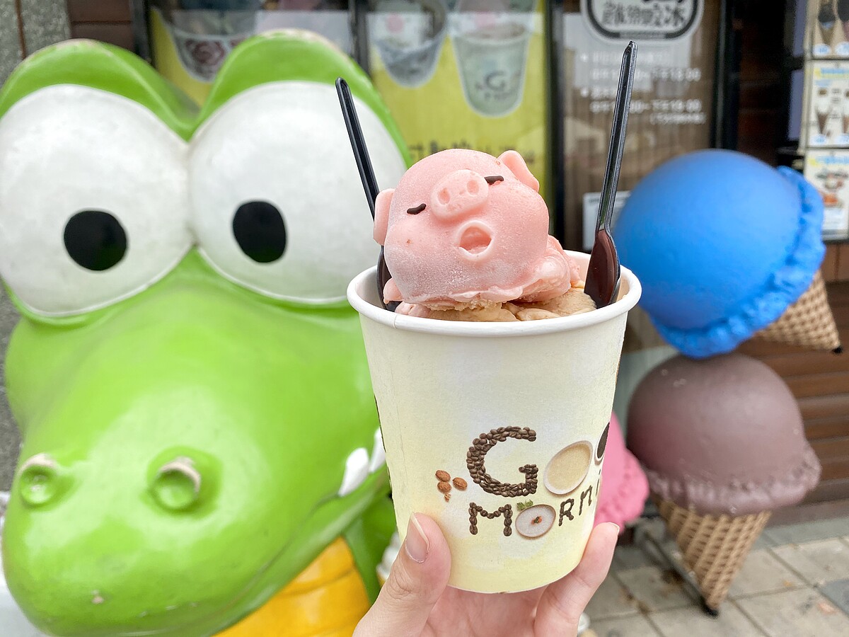 最上方的超萌小豬是優格口味,酸甜滋味更平衡了冰淇淋的甜度!
