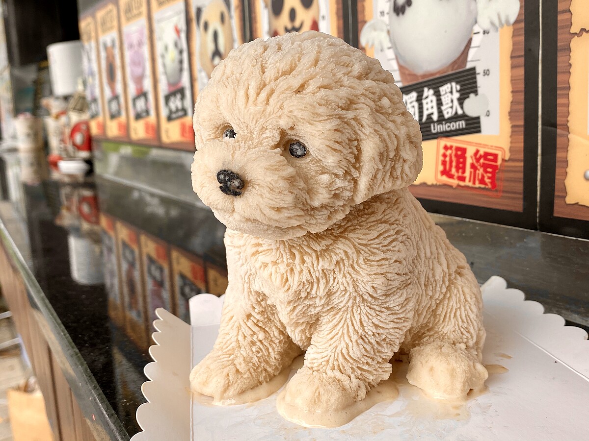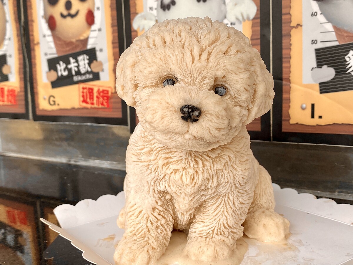 除了球球冰淇淋外~店內的動物冰淇淋也超可愛!像是店家近期推出的狗狗造型超逼真,神還原了水汪汪的無辜大眼、連毛髮都非常細緻!