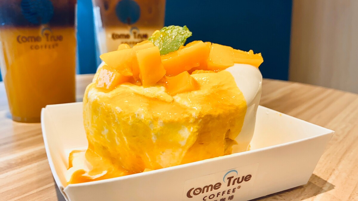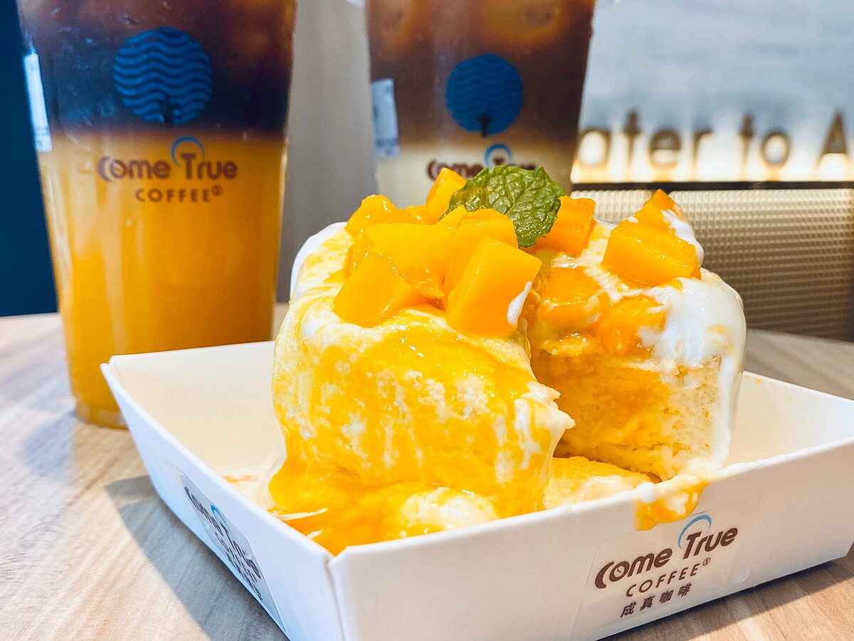 成真咖啡S門市迎接夏季到來推出全新芒果餐點系列,以外帶美食的形式,讓大家在忙碌的生活裡也能品嚐療癒的舒芙蕾!