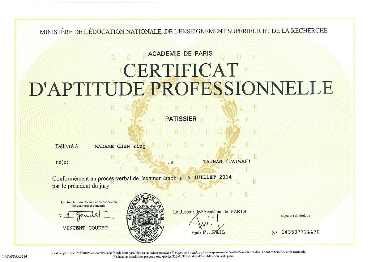 值得注意的是,這些學校開設的國際班甜點與廚藝課程,雖然學校可以頒發結業證書,但由於國際班並非法國正式教育系統內的課程,這紙證書相當於補習班的證書,並沒有任何資格認證的效力。如果希望取得法國的職業甜點師資格,需要自行報名並通過證照考試。