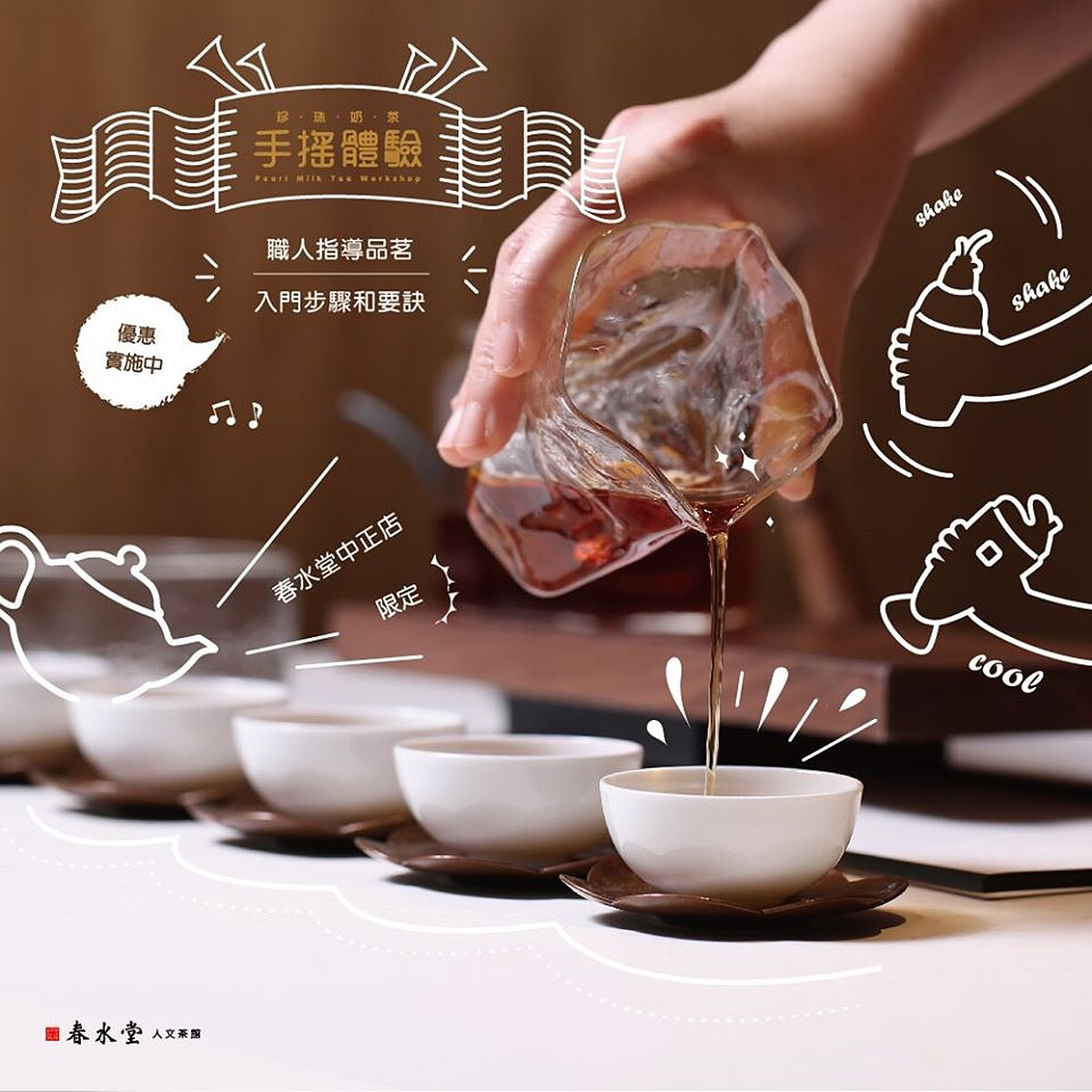 近期春水堂開設了珍奶手搖體驗,大方公開珍奶好喝的秘訣,讓無珍奶不歡的珍奶控們也可以自製出一杯最香濃的珍珠奶茶!
