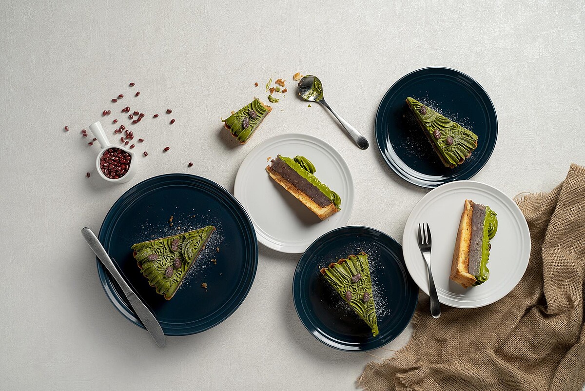 另一人氣商品萬丹紅豆抹茶塔特嚴選台南黑糖、屏東萬丹一號紅豆與靜岡抹茶等食材,將紅豆與黑糖一同熬煮,搭配上層溫潤回甘的抹茶甘納許和底層酥脆塔皮,層層交疊出完美滋味!