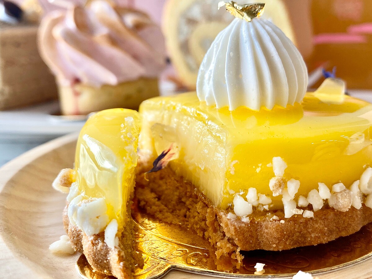 采采保留經典法式檸檬醬,將傳統塔皮以東方美人茶入味的沙布列餅乾取代,酸甜綿密的檸檬醬與茶香沙布列融合出多層次的香氣與口感,而強烈的檸檬滋味更是嗜酸者的最愛!