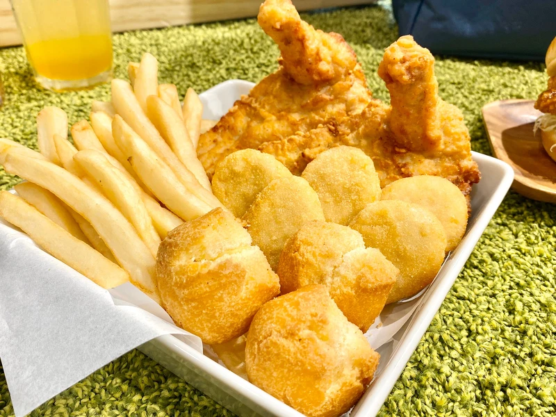 和風炸機(2份)、摩斯雞塊(1份)、薯條L(1份)、米斯球(1份)、冰紅茶L(2杯)