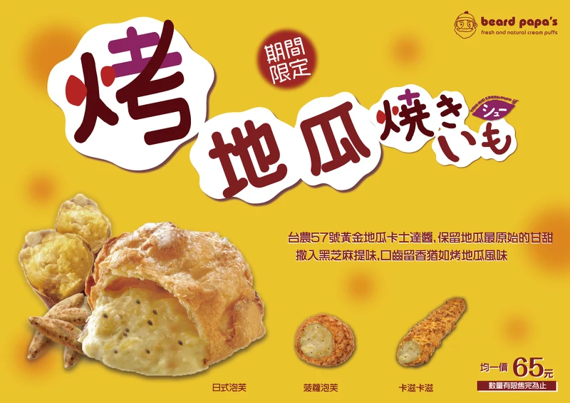 《beard papa》推出6月限量新口味「烤地瓜泡芙」!台農57號黃金薯結合卡士達醬,甘甜綿密內餡太想來一顆
