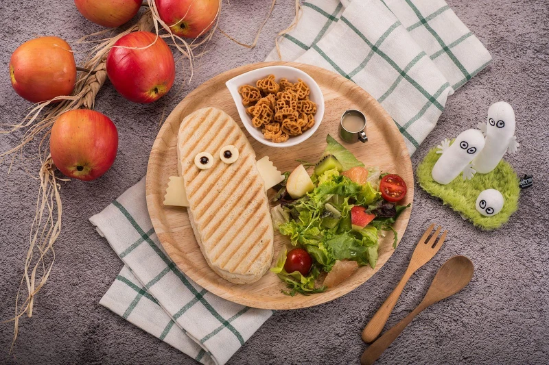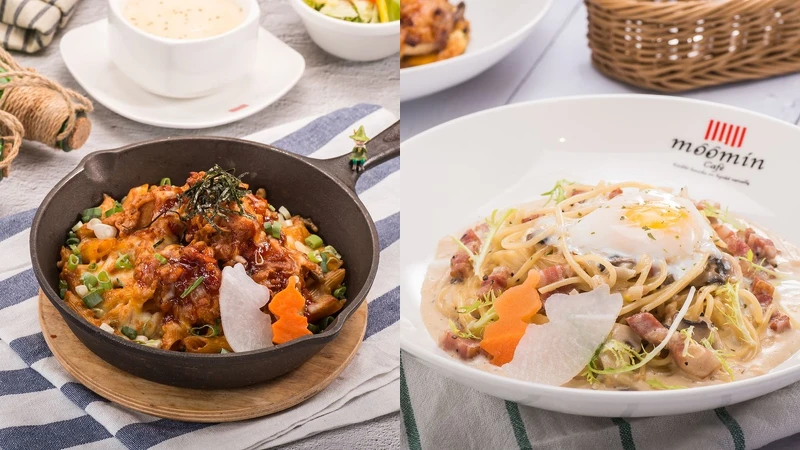 提供起司火腿、白醬野菇兩種不同口味供大家選擇,獨特的嚕嚕米造型點心麵更是畫龍點睛,添增用餐趣味!