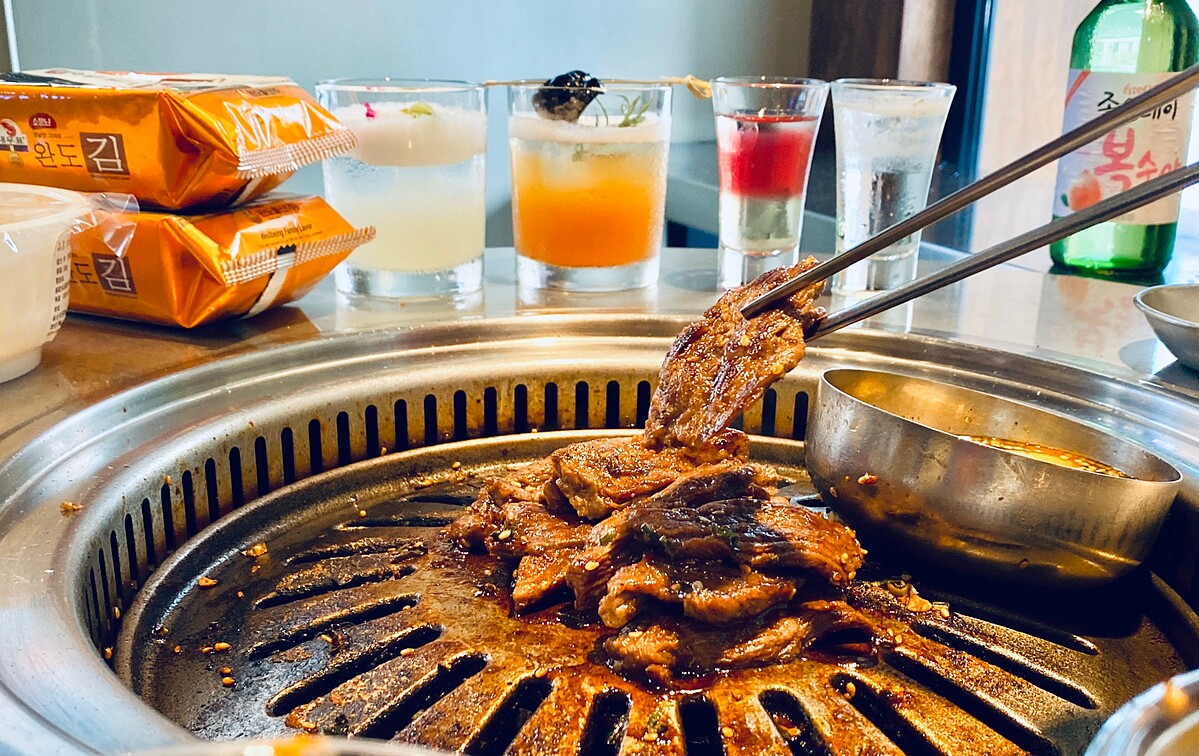 並結合韓國便利商店模式,於入口處設置了小菜及白飯貨架,依喜好先選購後與烤肉一同享用,不用飛韓國在新村就能感受韓國道地的用餐體驗!