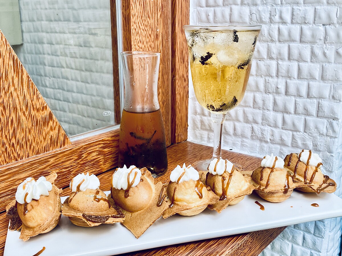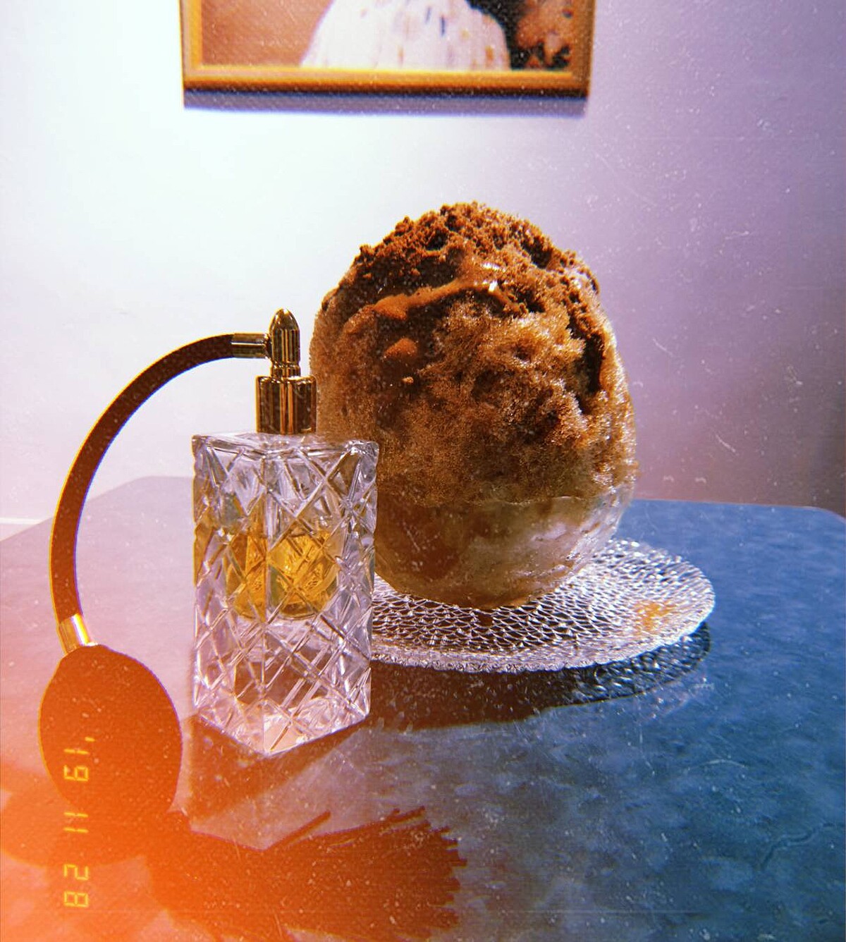 小編私心推薦!最外層是濃郁的焦糖淋醬,裡面吃得到醃漬過的奶油蘋果.牛奶糖醬、手工肉桂餅乾,一旁還附上了裝滿威士忌的香水瓶,可以自由噴灑在冰品上,帶有淡淡酒香的大人系冰品!
