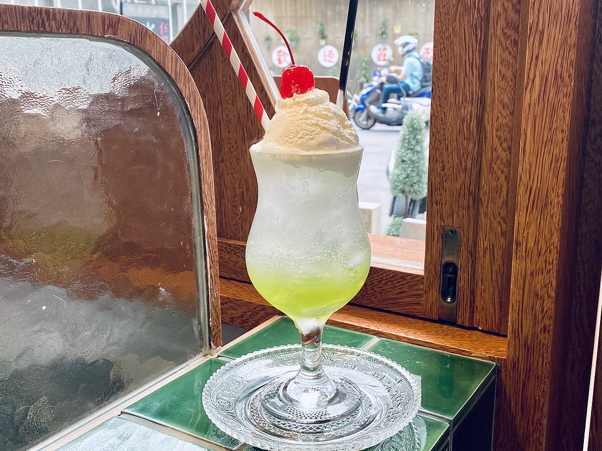 非常復古的造型氣泡飲,放上一層香草冰淇淋,光是是覺得超消暑!