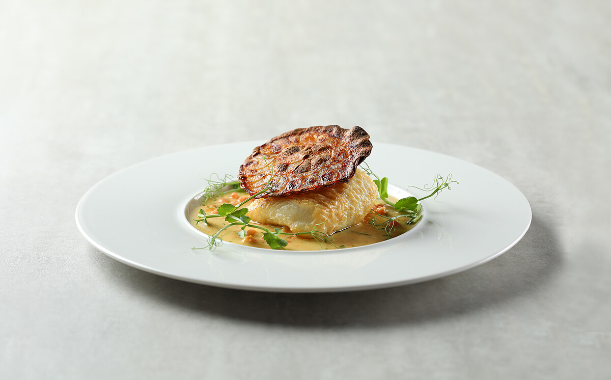 【香煎比目魚襯安娜洋芋迪格蕾醬汁】