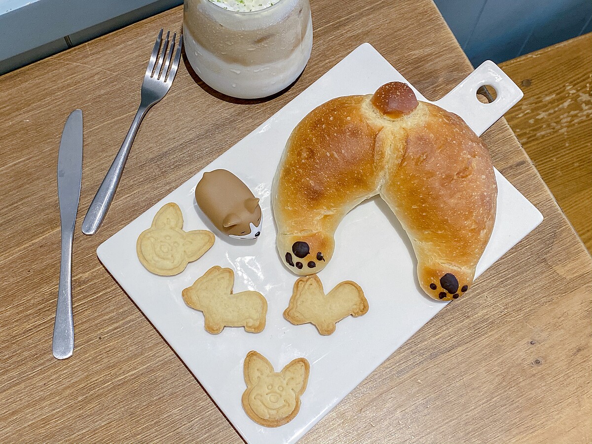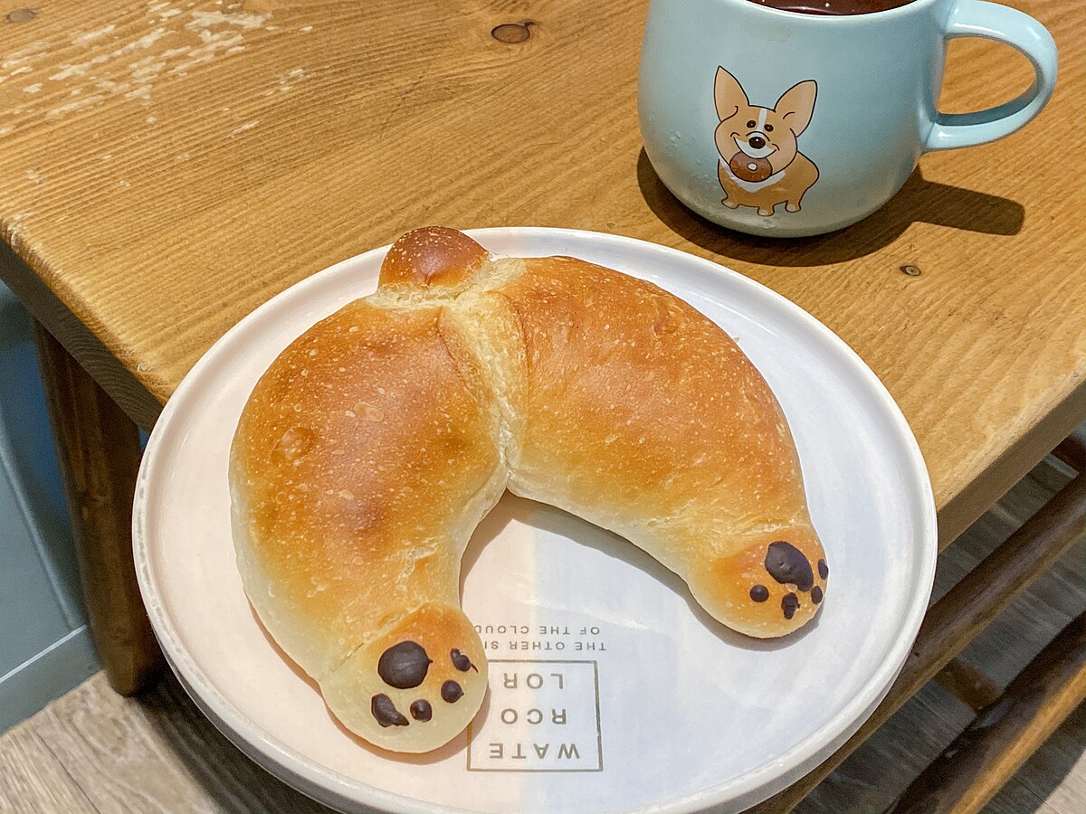 使用店家自行培養酵母製成野生酵母麵包,因為手工製作每一個麵團發酵程度不同,而尾巴、腳的位置會有所差異,就像是不同的柯基犬更加可愛!