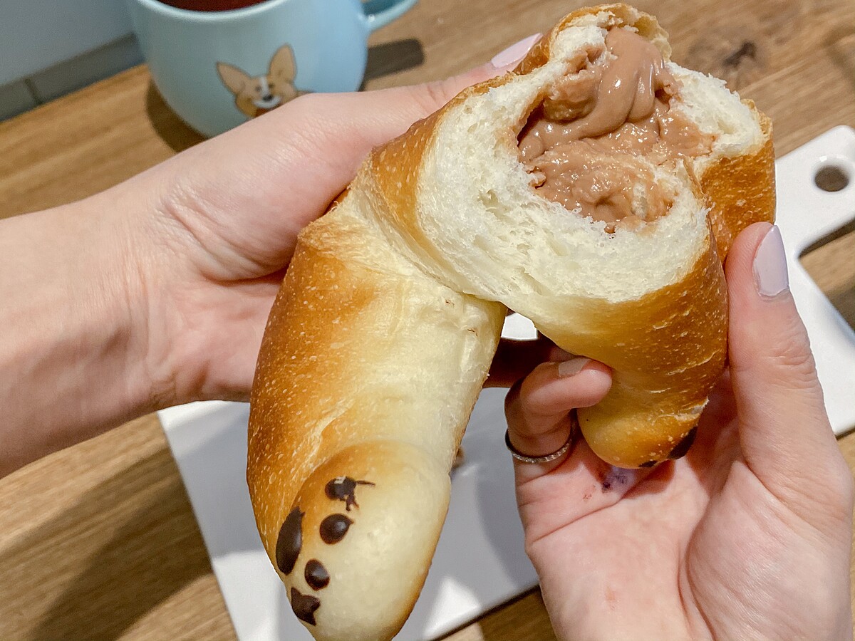 柯基屁屁麵包主要是以吐司的麵團製作而成,口感較有嚼勁,越嚼越有麵包天然香氣,搭配卡士達餡料濕潤度恰到好處!
