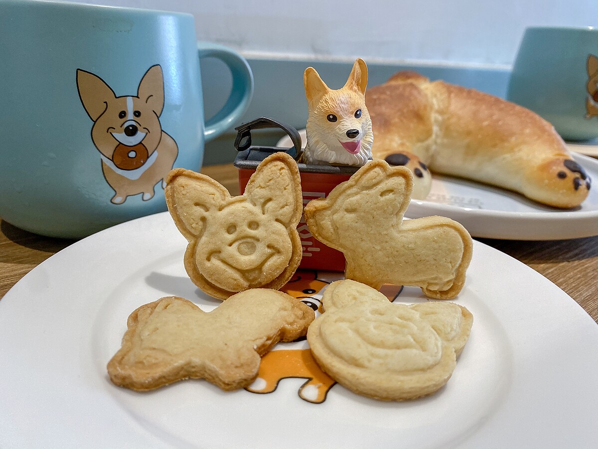 除了柯基屁屁麵包外,下午茶也可以選擇柯基餅乾,共有3款不同圖案,像是柯基討喜的表情、屁屁、整隻造型、來一片厭世感立刻消失得無影無蹤!