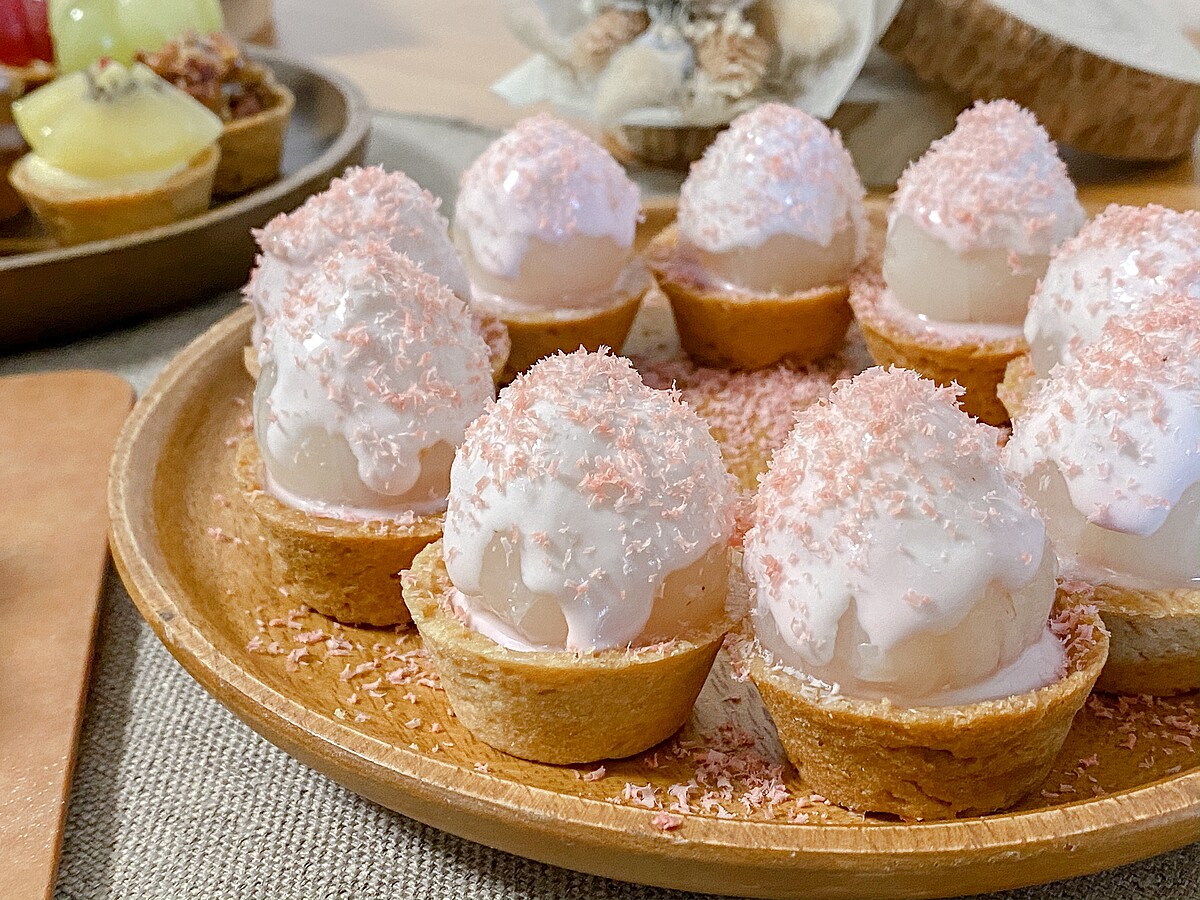小編私心推薦必吃!夏天除了吃芒果,玉荷包荔枝也是許多人的最愛,近期推出夢幻爆表的迷你粉紅荔枝覆盆子塔!