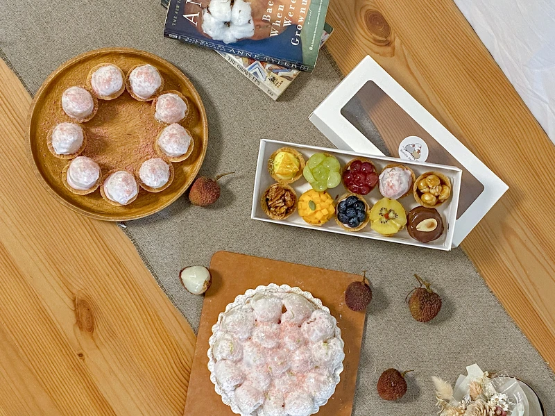 嚴選食材、新鮮水果每日現做,各式甜點皆以減糖、少油的方式製成,塔皮皆是當天現烤香氣逼人、口感酥脆!