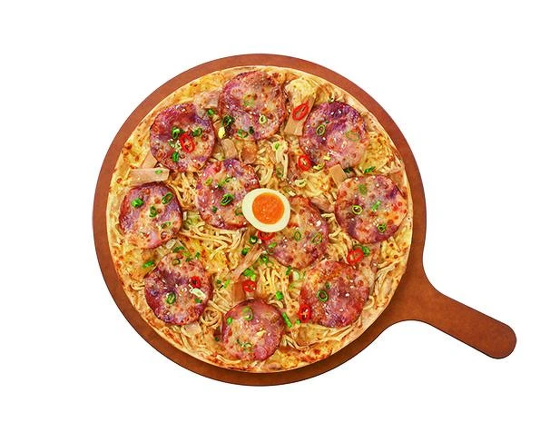 必勝客新口味拉麵披薩太狂了!首度與麵屋武藏合作,還有大片叉燒肉、溏心蛋一次滿足