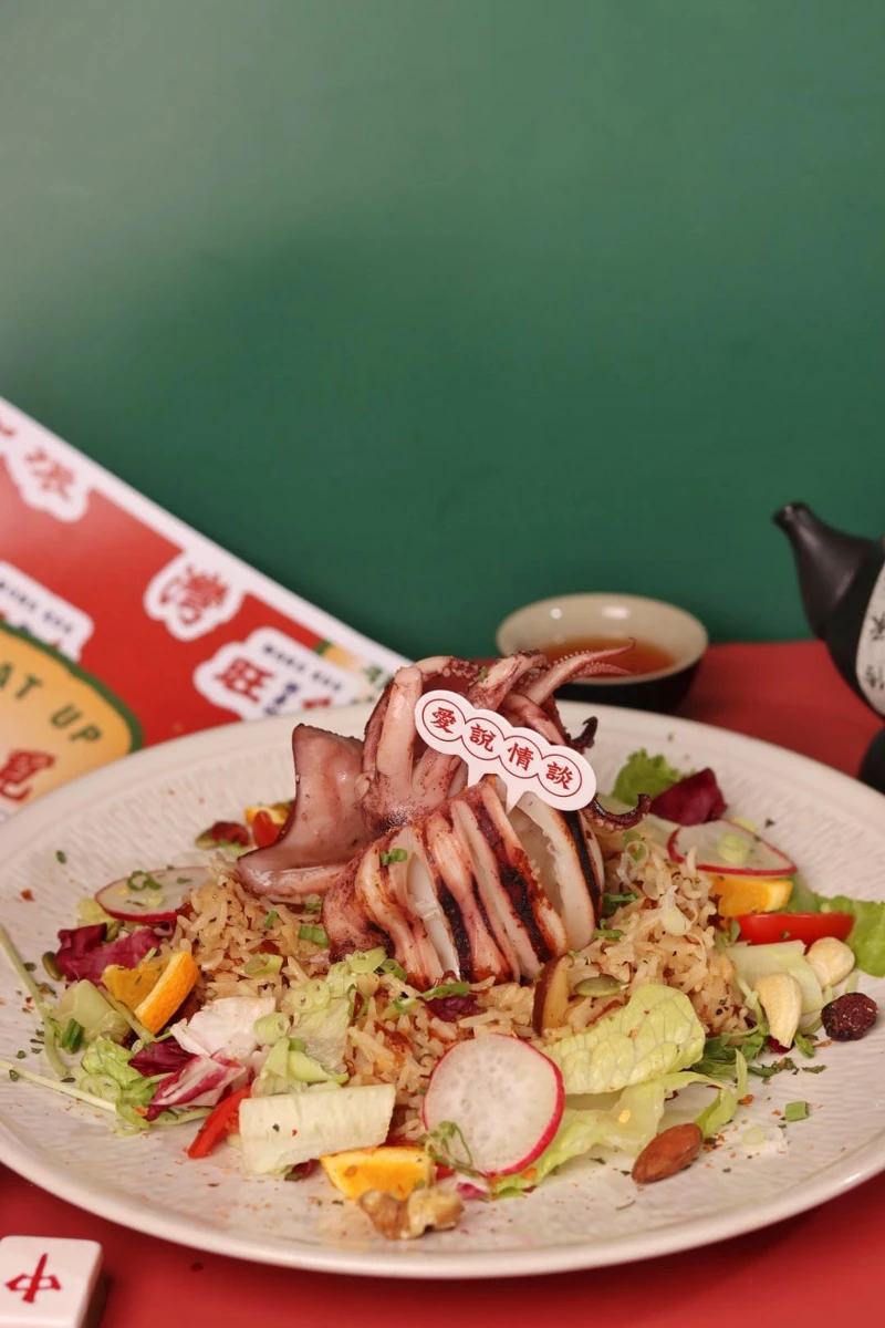 以香港百年品牌李錦記XO醬製作燉飯,再加上比手掌還大的新鮮花枝,滿滿一大盤男生不怕吃不飽,超有飽足感。