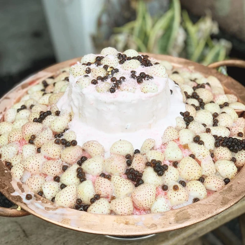 玫瑰花糖漿嚴選屏東有機農場玫瑰花瓣低溫慢煮調製!將玫瑰花糖漿淋在刨冰上,餡料則是加入了愛玉、玫瑰花醬,最外層再放上圍上一整圈的台灣本產荔枝!入口感受玫瑰細緻花香、莓果酸甜風味,再搭配荔枝飽滿多汁的果實,就是盛夏中最消暑的冰品!